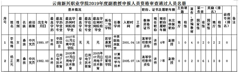 附件:云南新兴职业学院2019年度副教授申报人员资格审查通过人员名册