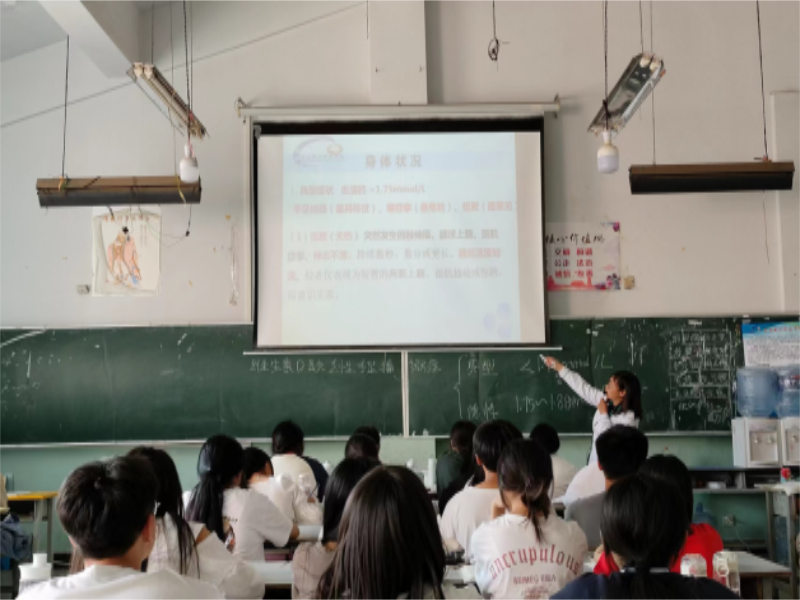 在倡导大力开展校本教学研究的今天,学院大力开展听课评课活动、研究并改进教学中存在的问题尤其显得重要。为深入贯彻落实全国高校教学能力提升。云南新兴职业学院教师综合素质提升计划已经进入第二阶段(即课堂教学能力提升阶段)。由学校教务处统一组织的教师观摩课在禄劝和水海子校区同时进行。5月9日下午4:30,在水海子校区五教301室召开思雅开放课堂第一期第十一讲。由护理学院综合护理教研室骨干教师景云梅讲师在2021级五年制护理7班讲授。还有护理学院、康复学院、药学院部分老师积极进行了观摩。
