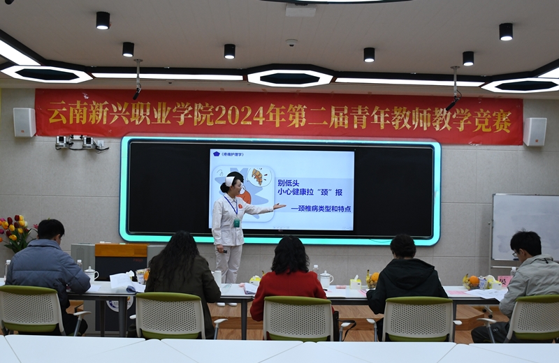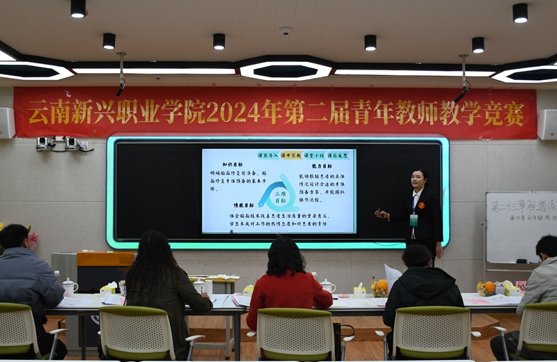 为深入贯彻习近平总书记关于教育的重要论述和全国教育大会精神,落实立德树人根本任务,注重师德师风建设,着力提升青年教师的课堂教学能力和专业水平,夯实教学基本功,激发青年教师创新教育理念和实践教学热情。2024年11月28日下午,由药学院承办的“2024年云南新兴职业学院第二届青年教师教学竞赛”在护理学院601智慧教室和603教室举办。本次比赛邀请到昆明医科大学、云南师范大学、云南大学、昆明学院4所大学的教授及校内赵小淘、吴坤、李宽、晏涛等10位校内外专家老师担任评委。来自各个二级教学单位的21名教师参加了本次竞赛,全校师生通过线上和线下多种渠道全程观看了这场比赛。