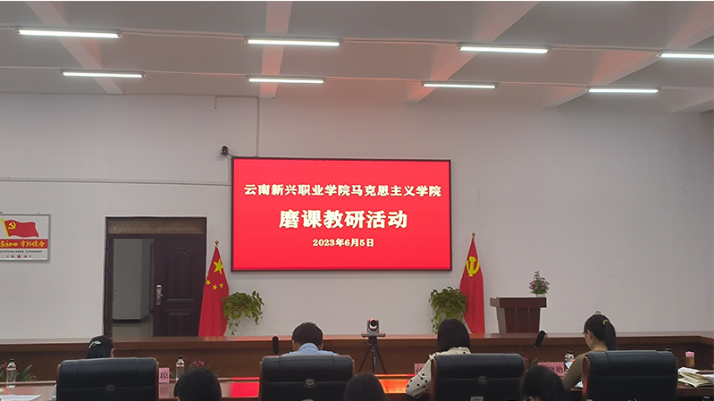 马克思主义学院于2023年6月6日晚邀请到云南新兴职业学院校长刘沧山、党委副书记孙克松、副校长潘琼、副校长李艳梅、副校长李晓艳等中层干部以及在省级、国家级教学比赛中获得优秀成绩的一线教师一起参与磨课教研活动,本次活动由马克思主义学院副院长李晓慧主持,马克思主义学院全体教师协同筹备,为我校参赛教师提供专业的指导。