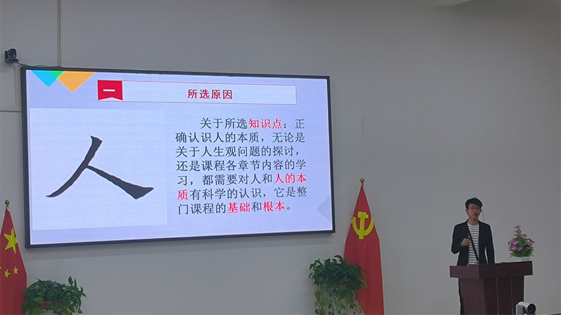 晏涛老师报名参加《思想道德与法治》课程教学比赛,此次磨课活动选取专题二第一节第一个知识点:正确认识人的本质。分为说课和讲课两个阶段进行,采用比较教学法、案例分析法以及启发式教学法等进行全面系统讲解,晏涛老师说课用时四分零二秒,讲课用时十四分零五秒,总用时十八分零七秒。